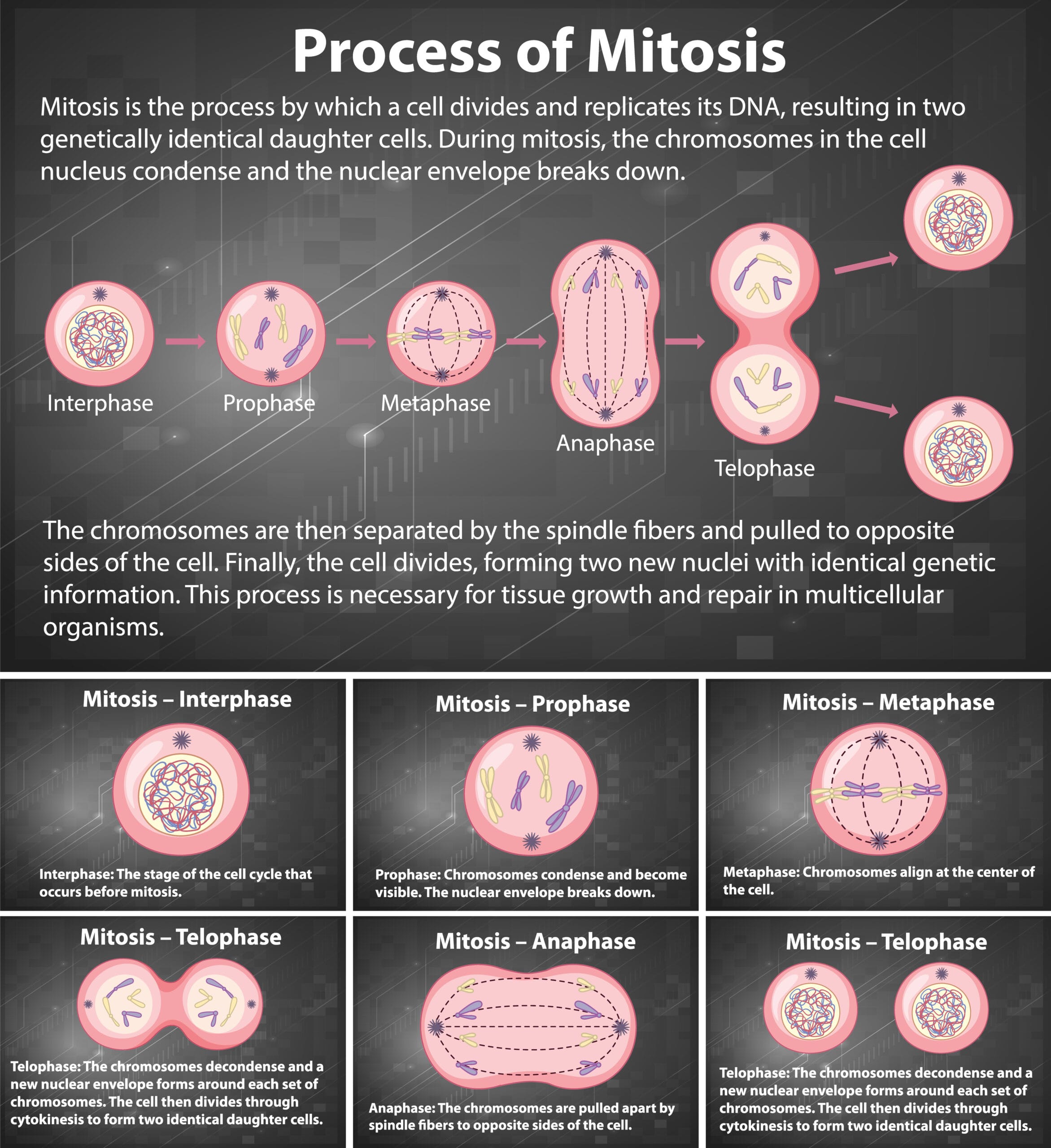 Mitosis is a fundamental biological process where a single cell divides to produce two identical daughter cells, each containing the same number of chromosomes as the parent cell. It is a type of cell division that ensures...